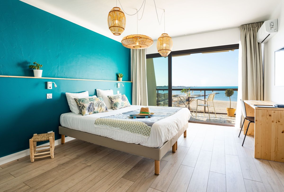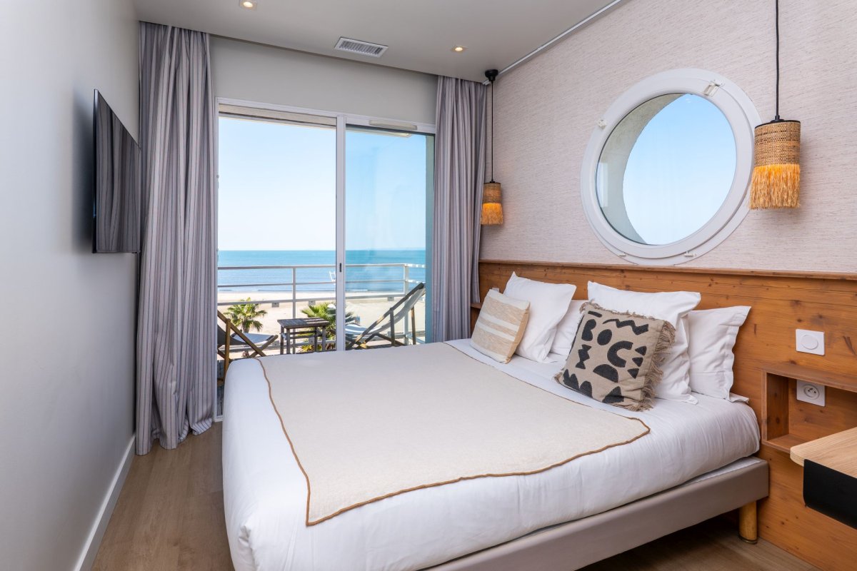 Our 4 non-smoking Sea view rooms from 14m to 15.50m are located on the 1st or 2nd floor with a private open terrace. They are served by an elevator.
