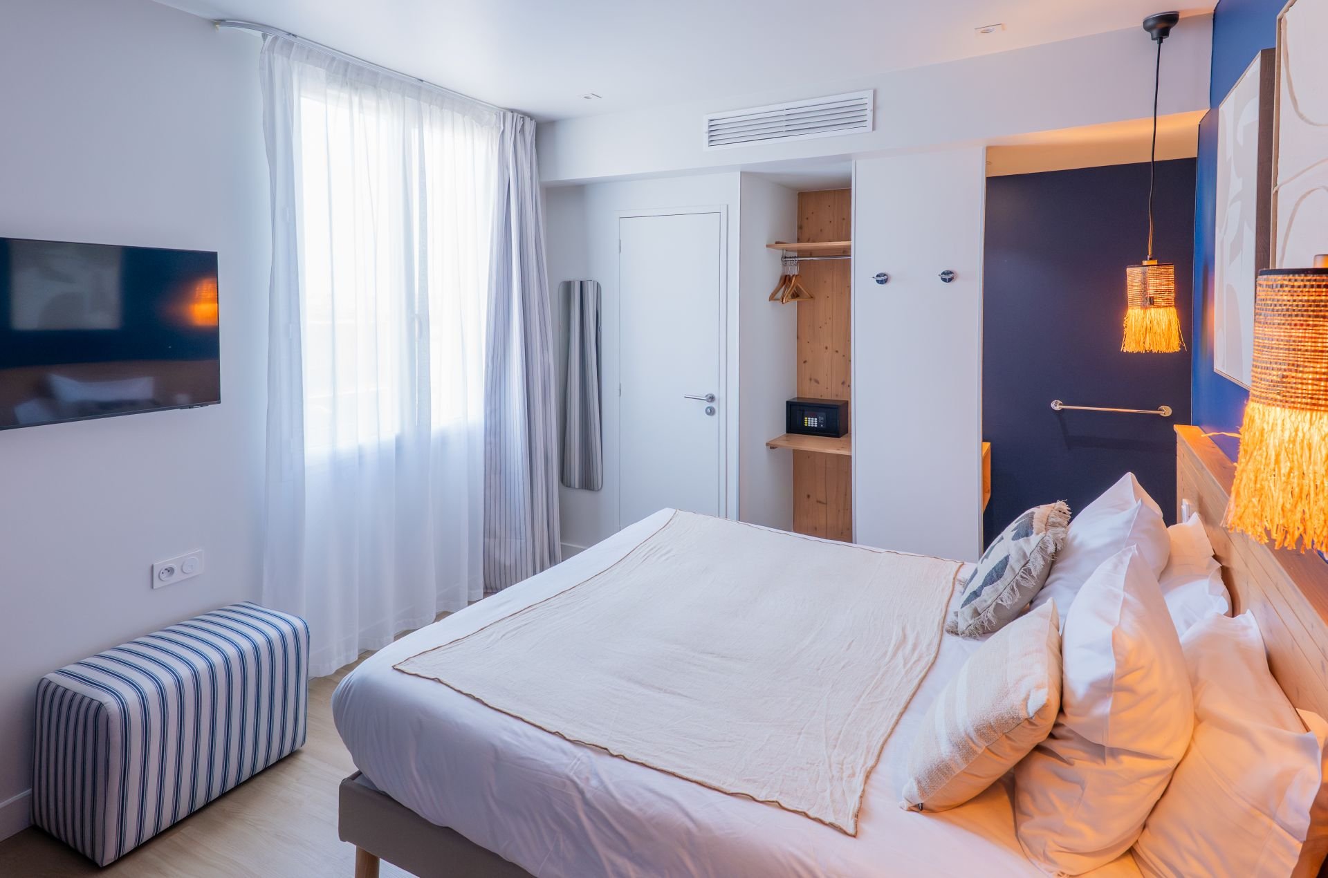Our 8 non-smoking Sea View Rooms from 14 to 15.50 m2 are located at the 1st or 2nd floor with a private open terrace. They are served by an elevator.