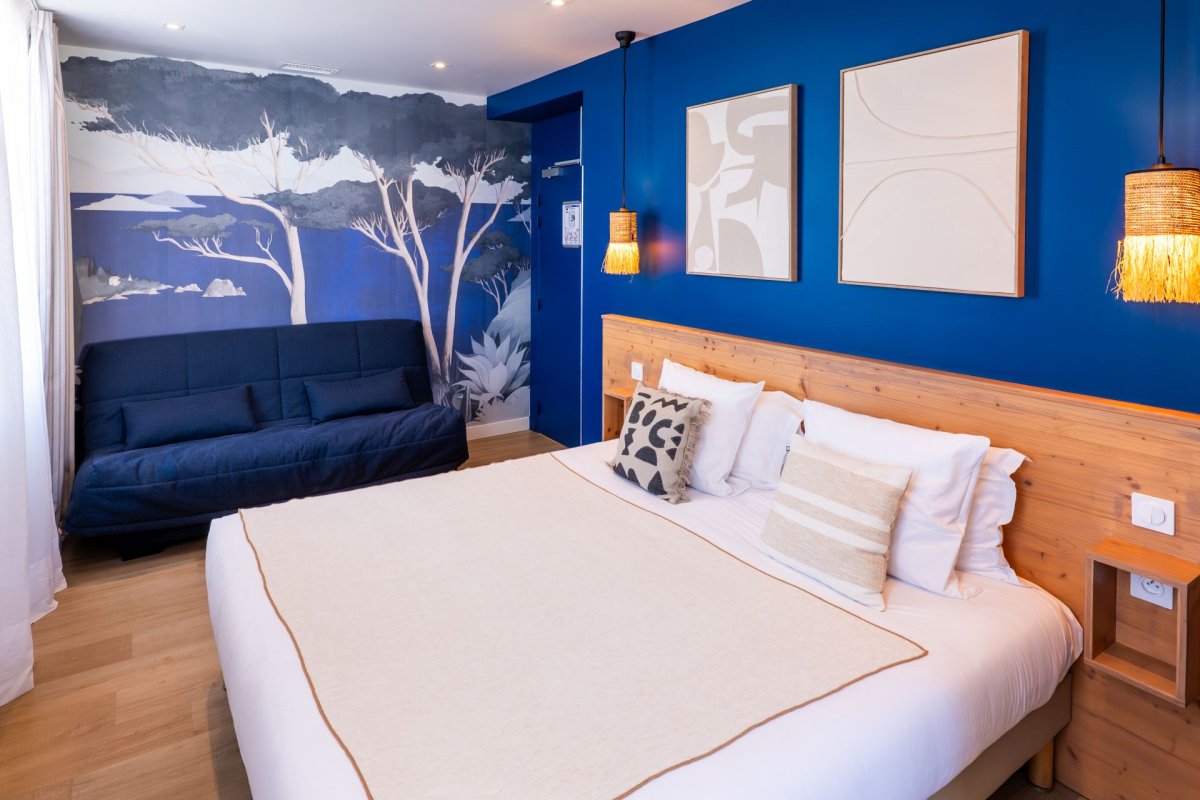They include a King size bed (180x200) or 2 single beds (90x200) on request, as well as a convertible armchair for sleeping children.