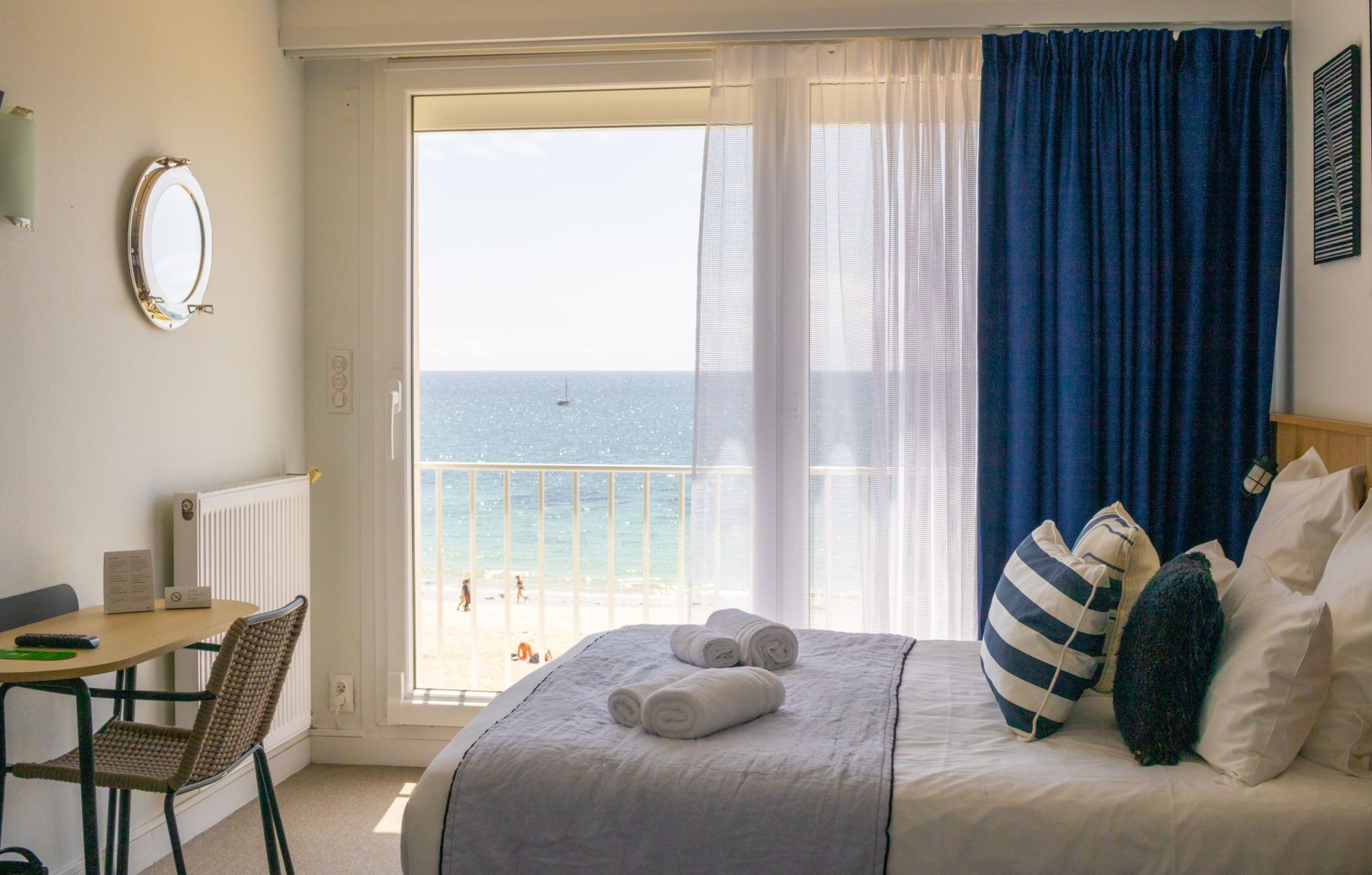 Our 2 PMR sea-view rooms, located on the ground floor, are fully equipped to welcome people with reduced mobility. With a surface area of around 20m2, they all have a sea view.